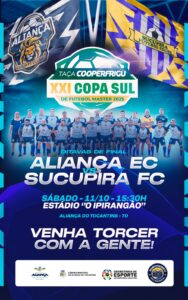O Aliança Esporte Clube Master entra em campo novamente pela XXI Copa Sul de Futebol Master, em um duelo decisivo contra a equipe de Sucupira. A partida acontece neste sábado, às 15h30, no Estádio O Ipirangão, em Aliança do Tocantins.