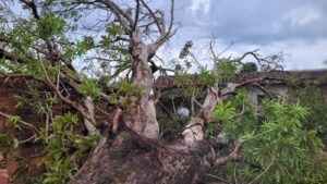 Segundo os vizinhos, a árvore já apresentava sinais de que poderia cair há algum tempo, e a chuva de ontem teria sido o “empurrãozinho” que faltava para o acidente acontecer.