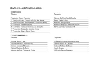 A  apresentação da chapa “Aliança Pelo Agro”  foi oficializada e confirmada  a participação no pleito,  na última  segunda-feira, 14 de julho, com  a presença dos integrantes da nova diretoria e do Conselho Fiscal.