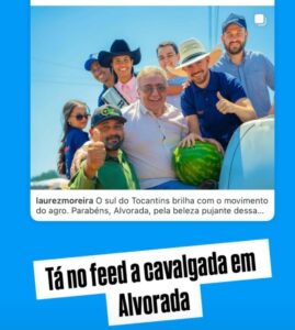 A agenda foi concluída em Alvorada, no domingo, dia 31, com a participação de Laurez na Cavalgada da 32ª Exposição Agropecuária de Alvorada do Tocantins, reafirmando seu contato próximo com a população e o setor agropecuário.